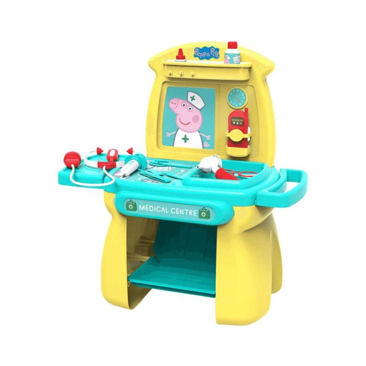 Mi Primer Centro Médico Peppa Pig ofrece todo lo necesario para ponerse en la piel de un doctor o doctora. A la edad de 3 o 4 años se comienzan a adquirir roles determinados a la hora de jugar y se juega a imitar las profesiones del mundo de los adultos. Cuenta con 11 divertidos accesorios fáciles de manipular y de recoger. Solo falta la imaginación de los niños para convertir las tardes y el espacio de juego en toda una consulta médica. Dimensiones(anchoxaltoxlargo)14,5 x 58,7 x 38,8 cm. Para peques a partir de 18 meses.